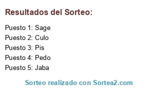 Lista de participantes: Joel, Sage, Nano, Culo, Jaba, Desk, Pipi, Pedo, Pis, LOL.