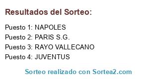 Lista de participantes: PARIS S.G., NAPOLES, JUVENTUS, RAYO VALLECANO.