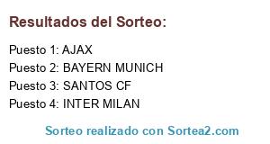 Lista de participantes: INTER MILAN, SANTOS CF, AJAX, BAYERN MUNICH.