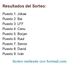 Lista de participantes: LFF, Senior, Iván, David, Raul, Cenu, Bai, Borjan, Jokae.