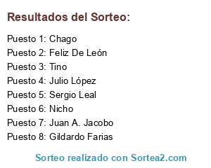 Lista de participantes: Tino, Nicho, Feliz De León, Gildardo Farias, Chago, Sergio Leal, Julio López, Juan A. Jacobo.