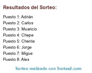 Lista de participantes: Jorge, Muaricio, Chepe, Carlos, Adrián, Migue, Chente, Alex.