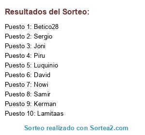 Lista de participantes: Betico28, Luquinio, Piru, Nowi, Sergio, Kerman, Joni, Samir, David, Lamitaas.