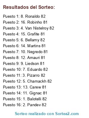 Lista de participantes: 1. Balotelli 82, 2. Pandev 82, 3. Pizarro 82, 4. Van Nistelroy 82, 5. Chamackh 82, 6. Bellamy 82, 7. Eduardo 82, 8. Ronaldo 82, 9. Liedson 81, 10. Negredo 81, 11. Gignac 81, 12. Amauri 81, 13. Carew 81, 14. Martins 81, 15. Grafite 81, 16. Robinho 81.