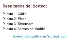 Lista de participantes: Atletico de Madrid, Cádiz, Tottenham, Eibar.