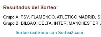 Lista de participantes: FLAMENGO, SHAKTAR, INTER, BILBAO, ATLETICO MADRID, PSV, CELTA, MANCHESTER UNITED.