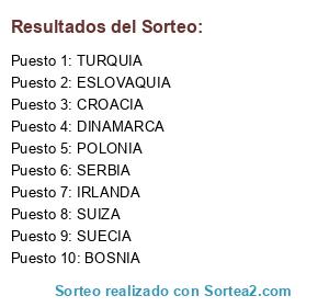 Lista de participantes: CROACIA, TURQUIA, ESLOVAQUIA, BOSNIA, SUIZA, POLONIA, IRLANDA, SUECIA, DINAMARCA, SERBIA.