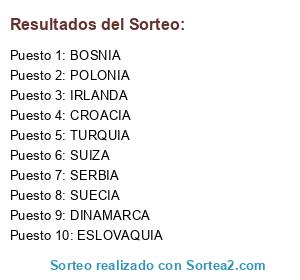 Lista de participantes: CROACIA, TURQUIA, ESLOVAQUIA, BOSNIA, SUIZA, POLONIA, IRLANDA, SUECIA, DINAMARCA, SERBIA.