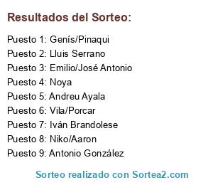Lista de participantes: Niko/Aaron, Antonio González, Vila/Porcar, Emilio/José Antonio, Iván Brandolese, Genís/Pinaqui, Andreu Ayala, Noya, Lluis Serrano.