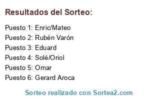 Lista de participantes: Solé/Oriol, Eduard, Enric/Mateo, Omar, Gerard Aroca, Rubén Varón.