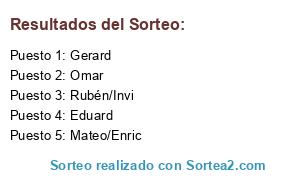 Lista de participantes: Eduard, Gerard, Omar, Rubén/Invi, Mateo/Enric.