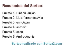 Lista de participantes: Andreu/genis, Pinaqui/Julian, Lluis fernandez/vila, ocon, enric/ivan, antonio.