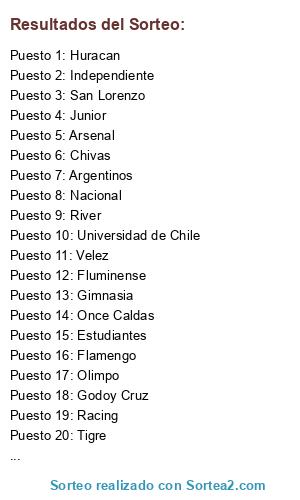 Resultados del sorteo: