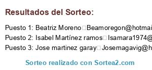 - Puesto 1: Beatriz Moreno Beamoregon@hotmail.com