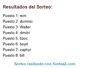 Lista de participantes: Walter, dimitri, tizoc, dominic, zaphyr, rem, boyd, bill.