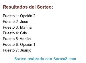 Lista de participantes: Adrián, Cris, Jose, Juanjo, Marina, Opción 1, Opción 2.