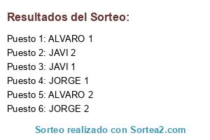 Lista de participantes: ALVARO 1, ALVARO 2, JORGE 1, JORGE 2, JAVI 1, JAVI 2.