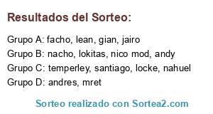 Lista de participantes: andres, andy, facho, gian, jairo, lean, locke, lokitas, mret, nacho, nahuel, nico mod, santiago, temperley.