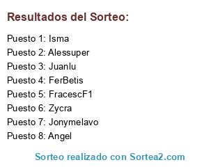 Lista de participantes: Alessuper, FerBetis, Isma, Jony, Juanlu, Zycra, Alvaro, Sadev.