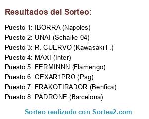 Lista de participantes: IBORRA (Napoles), UNAI (Schalke 04), R. CUERVO (Kawasaki F.), PADRONE (Barcelona), FRAKOTIRADOR (Benfica), FERMINNN (Flamengo), CEXAR1PRO (Psg), MAXI (Inter).