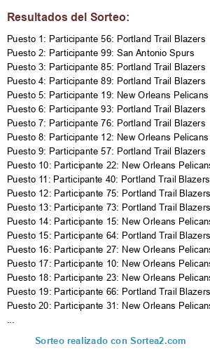 - Puesto 3: Participante 85: Portland Trail Blazers