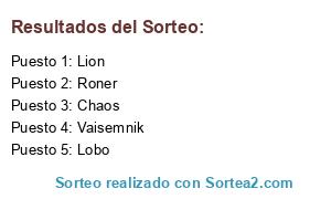 Lista de participantes: Vaisemnik, Lobo, Beowulf, Lion, Felipe, Roner, Wizkhalifa, Golo, Chaos, King, John, Harleybuck.