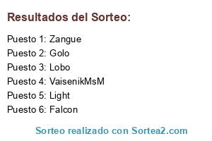 Lista de participantes: VaisenikMsM, Beowulf, Roner, Wizkhalifa, Falcon, John, Felipe, Zangue, Light, Lobo, Samudio, Golo.