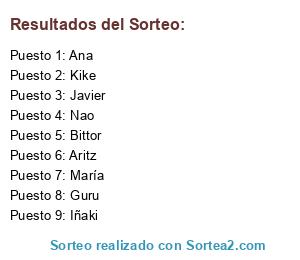 Lista de participantes: Ana, Javier, Aritz, Nao, Iñaki, Kike, Bittor, Guru, María.