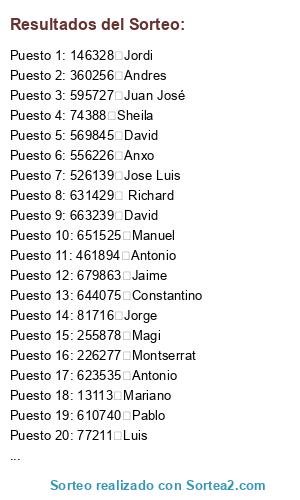 Resultados del sorteo: