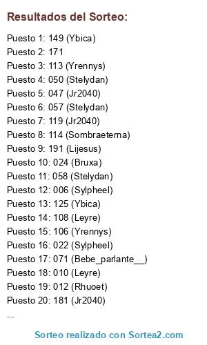 Resultados del sorteo: