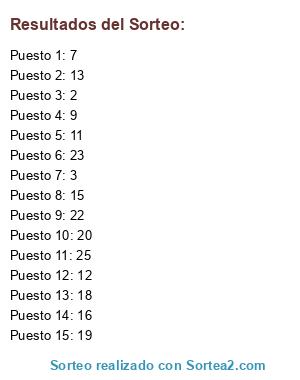 Lista de participantes: 1, 2, 3, 4, 5, 6, 7, 8, 9, 10, 11, 12, 13, 14, 15, 16, 17, 18, 19, 20, 21, 22, 23, 24, 25.
