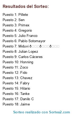 Resultados del sorteo: