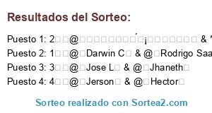 Lista de participantes: 1️⃣@Darwin C & @Rodrigo Saavedra, 2️⃣@✰❣︎ꪜ૯૨ᴏ́ท¡૮ล❀ꨄ︎ & *Hugo*, 3️⃣@Jose L & @Jhaneth, 4️⃣@Jerson & @Hector.