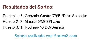 Lista de participantes: 1. Rodrigo/78/DC/Benfica, 2. Mauri/80/MCO/Lazio, 3. Gonzalo Castro/79/EI/Real Sociedad.