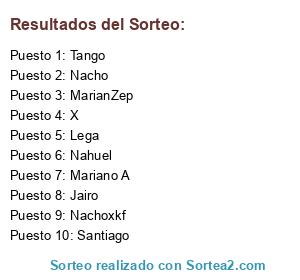 Lista de participantes: Jairo, MarianZep, Mariano A, Nacho, Lega, Tango, Santiago, Nahuel, Nachoxkf, X.