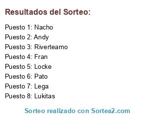 Lista de participantes: Andy, Fran, Lega, Locke, Lukitas, Nacho, Pato, Riverteamo.