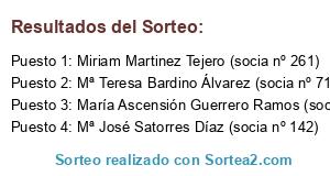 - Puesto 2: Mª Teresa Bardino Álvarez (socia nº 716)