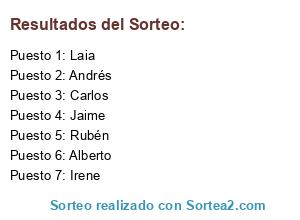 Resultados del sorteo: