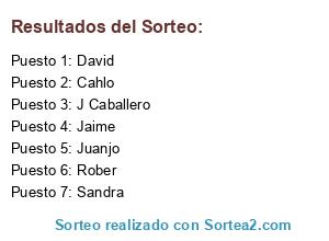 Lista de participantes: Cahlo, David, Jaime, J Caballero, Juanjo, Rober, Sandra.