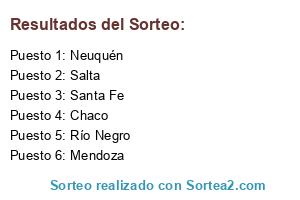Lista de participantes: Chaco, Neuquén, Río Negro, Mendoza, Santa Fe, Salta.