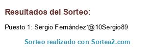 Lista de participantes: David Martinez @bimb_david , vega @betandvega , Javier @kintaflo , manu levia @manutete79 , Jaime Arteaga Gómez @yeimon7 , Gonzalo Carretero @gcarre89 , Illán @illanP , Silvia @todocorreitos , Damián del Pino @tirifico , Javier Garcia @JavierG94919976 , Álvaro Escudero @Alvaro_5_95 , Miriam :) @miriiaaaaaaam , Luis Lopez Ortega @wysillo , Luis Martín @Luis10Martin , @AlbertoJuan16 , paco guzman @pakete18 , Menea tu chapa™ @dani_morita1992 , franjf13 @FRANMORATETE , Sergio Fernández @10Sergio89 , JAIME HALA MADRID @jaimeervina11 , #BehindTheIronCount @chorryFrNz , Ebora @EboraSalinas , Edgar Zyzz @EdGaR_DrekU , Laura Benítez @Lyayuyrya , alberto garces @garcelsin , Bryan andres @BHerpar , Enrique Lindo @Enrique_lindo , Carlosaliasteta @carlosZasZas , SergiO Dice @Sergiorodri007 , Quique MorenoTrapote @QuiqueMoTra , A.D. Áncora Aranjuez @AncoraAranjuez , Víctor Gómez @VGMontenegro , ANDRES HERNANDEZ @ANDRES1HG , Nacho Echegoyen @nechegoyen , Pablo Tejon @PabloXikillo , javier @ratongil7 , Claudia Núñez @clausclaus3 , Óscar Del Moral @MisterODM , Andres Eurogares @96_andriu , Yal Meknessi. @xexuYunkos , MAGÁN BC 22 @juanmamorales20 , Sam krupicka @SamKrupicka , Uno Más @davidrespeto , driusk @driusktip , Mary @maryreal74 , Juan @JuanFut14 , Aitor @aitor_luso , SB 11 @burguibrx , Amatobet @AmatoBet , sevyyy !!! @Seevy7 , 18MuchaApuesta @muchaapuesta , Gómez ^^ @jaimegomezsie , Mi Todo♥ @21Diez , Jose Costero @Madrileno85 , Fran Dorado @FranDorado10 , Diego @diegozgz10 , maa1950_ @maa1950_ , punkaries1 @punkaries1 , Rodrigo Maza @rmaza8 , KikeHerrer FT9 DV&LM @kikeherrera_ , makariTAP @makariTAP , (= Samu =) @SamuTubi , Darío Sánchez @DariooSanchezD , Guerreiro. @mario_lugo15 , Husky Siberiano @_HuskySiberiano , Alvaro Matamoros @alvaro_2112 , David @Deividm92 , Victor Munoz @vige_08 , Debo Susurrar Que @DeboSusurrarQue , Manuel López @manumuri96 , Mati @AlexMF26 , Ainhoa León @Ainhoa_Leon , David Escaso @DEscasito , Iván @ivansite25 , Daniel @danichorizote69 , Adrián rafael @adrianrafael19 , David Casas @DavidCasasF , John Breezy @Yonky8 , Juancar @JuanCarMtnez , Matuuu✌️ @ManuelPerez23 , Alberto @AlbertoCadizCF , Aitor Almenar @AitorAlmenar8 , Aaron Titos @titoxelx , orge Lis Jiménez @Jorge_lis88 , JAVIER HERNANDO G @jandrocv84 , Felipe Villa ® @Fhilip_Villa , Alb @alber_454 , JV #7 @Juanvi13rg , ivan @ivanruizcuevas7 , tete @tetetato89 , Luiti @apuestasesores , OSCAR MARTIN GRANDE @oscarmgrande , Alberto Revilla @a_revilla , hector @deportiste , ⚽️£ui$⚽️ @LuisHeras9 , RAUL CARPIN @RAULCARPIN1 , McLenin's @LeninBigMac, BraisGarcia RCCV @BraisGarcia10 , Álvaro Jiménez @AlvaroRaboso , apostadornovato @aposta4 , Monkey D. Luffy @SenchouLuffy , @Albrerez , avi Aperador @JaviAperador , Guillermo @Konbanwa2011 , Adrián Gucci @AdrianBote77 , JAVI @javierbst , Carlos M L @carloscmb80 , David Calero @Calerozil , Iván1Ö @iivaan10 , Jorge Guadaño @JorgeGuadano , Pablo Pros @PabloPros1 , Álvaro Mars @alvero88 , CorazondePocker @Corazondepocker , Carlos @CarlosArraez1 , Juanan @juanan_5 , Edu Romero @eduR27 , Jose Alcazar @JoseAlcazar94 , كنت @francorreas .