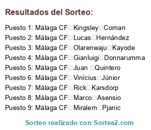 Lista de participantes: Málaga CF Theo Hernández, Málaga CF Yuri Berchiche, Málaga CF Gerard Pique, Málaga CF André Silva, Málaga CF Marco Asensio, Málaga CF Raheem Sterling, Málaga CF Aleix Vidal, Málaga CF Diego López, Málaga CF Gianluigi Donnarumma, Málaga CF Joaozinho, Málaga CF Gabriel Mercado, Málaga CF Mahmoud Dahoud, Málaga CF Mikel Merino, Málaga CF Hakan Calhanoglu, Málaga CF Miralem Pjanic, Málaga CF Olarenwaju Kayode, Málaga CF Danny Welbeck, Málaga CF Kingsley Coman, Málaga CF Sergio Ramos, Málaga CF Memphis Depay.