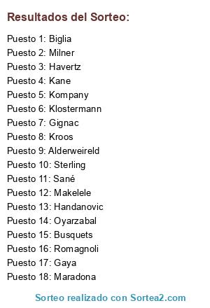 Lista de participantes: Maradona, Makelele, Handanovic, Alderweireld, Gaya, Romagnoli, Klostermann, Kompany, Kroos, Busquets, Havertz, Milner, Biglia, Sané, Sterling, Kane, Oyarzabal, Gignac.