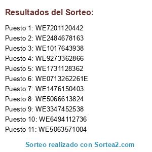 Este sorteo ha sido certificado por Sortea2. Sortea2 garantiza que: