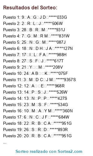 Resultados del sorteo: