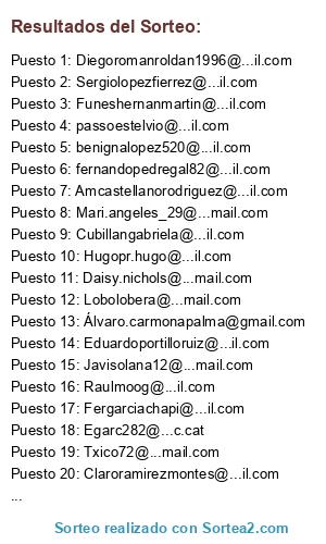 LOS 40 PRIMEROS SE LLEVAN EL PREMIO. LOS SUPLENTES SON LOS SIGUIENTES EN EL ORDEN ALEATORIO GENERADO POR EL SORTEO