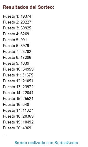 Este sorteo ha sido certificado por Sortea2. Sortea2 garantiza que:
