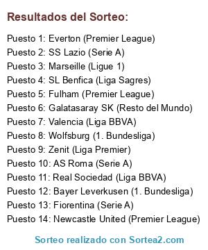Lista de participantes: Bayer Leverkusen (1. Bundesliga), Wolfsburg (1. Bundesliga), Real Sociedad (Liga BBVA), Valencia (Liga BBVA), Marseille (Ligue 1), Everton (Premier League), Fulham (Premier League), Newcastle United (Premier League), Fiorentina (Serie A), SS Lazio (Serie A), AS Roma (Serie A), SL Benfica (Liga Sagres), Galatasaray SK (Resto del Mundo), Zenit (Liga Premier).