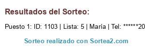 Este sorteo ha sido certificado por Sortea2. Sortea2 garantiza que:
