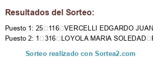 Resultados del sorteo: